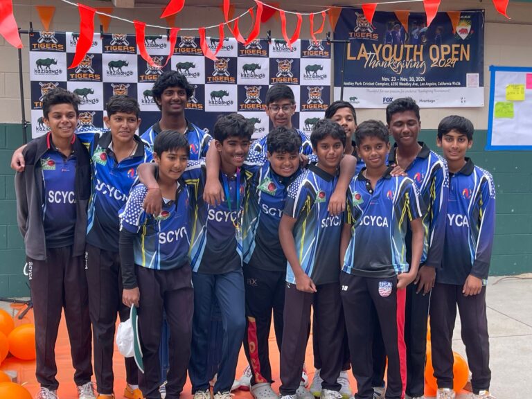 Southern California Youth Cricket Academy squads recorded outstanding performances across the board at the Thanksgiving Day LA Youth Open 2024, which took place from November 20-30th. In the U11 Series (Leg 2), SCYCA's U11 youth cricket team won the tournament. The SCYCA U13 squad also claimed a spot in their Series Final and finished 2nd out of 8 teams. Finally, the SCYCA U15 team opened the Thanksgiving youth cricket tournament with a bang, winning their first two matches.